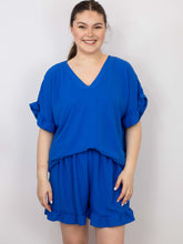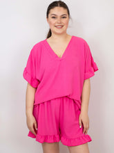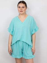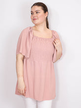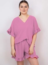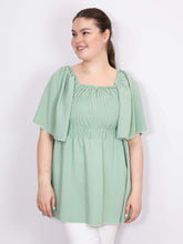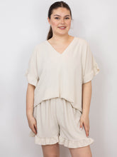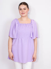Bomuldsbluse med flæsekanter - Brystmål 140cm