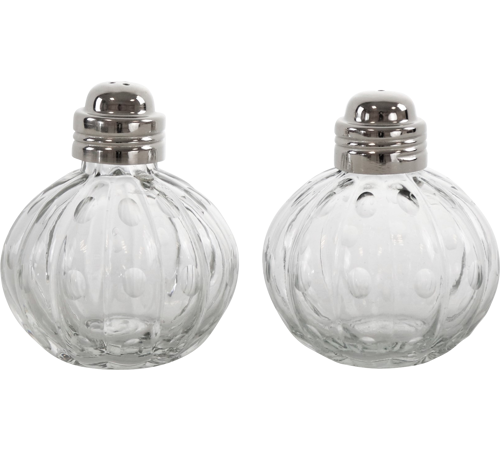 Tilføj stil og funktionalitet til dit spisebord med dette elegante salt- og peber sæt. Fremstillet i klart glas med smukt rillet design og blanke metal låg, giver de et klassisk udtryk, der passer til enhver borddækning – fra hverdagsmiddage til festlige anledninger.