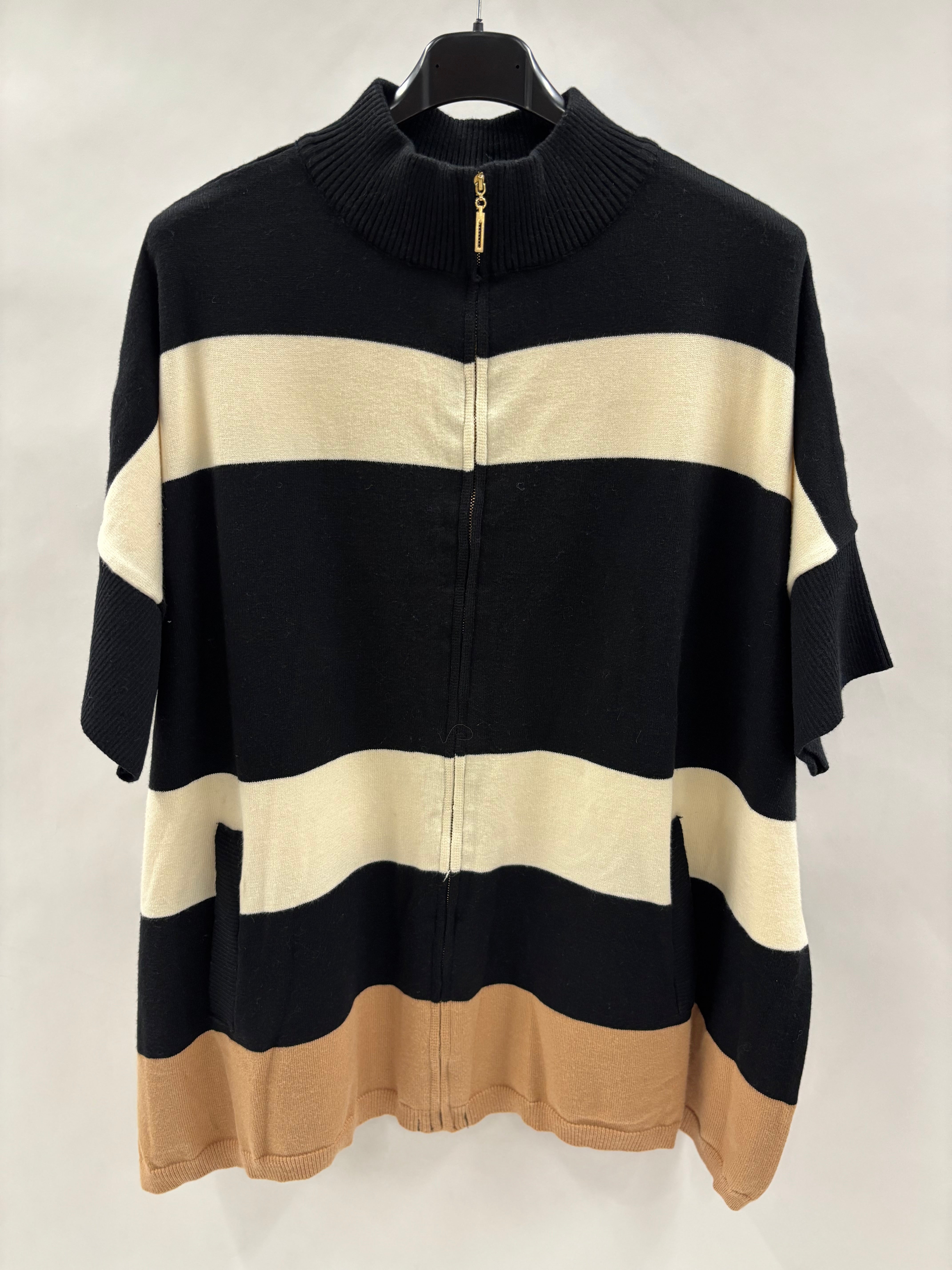 Kortærmet Strikcardigan med Lynlås og Store Block-Print – Komfortabel og Stilfuld