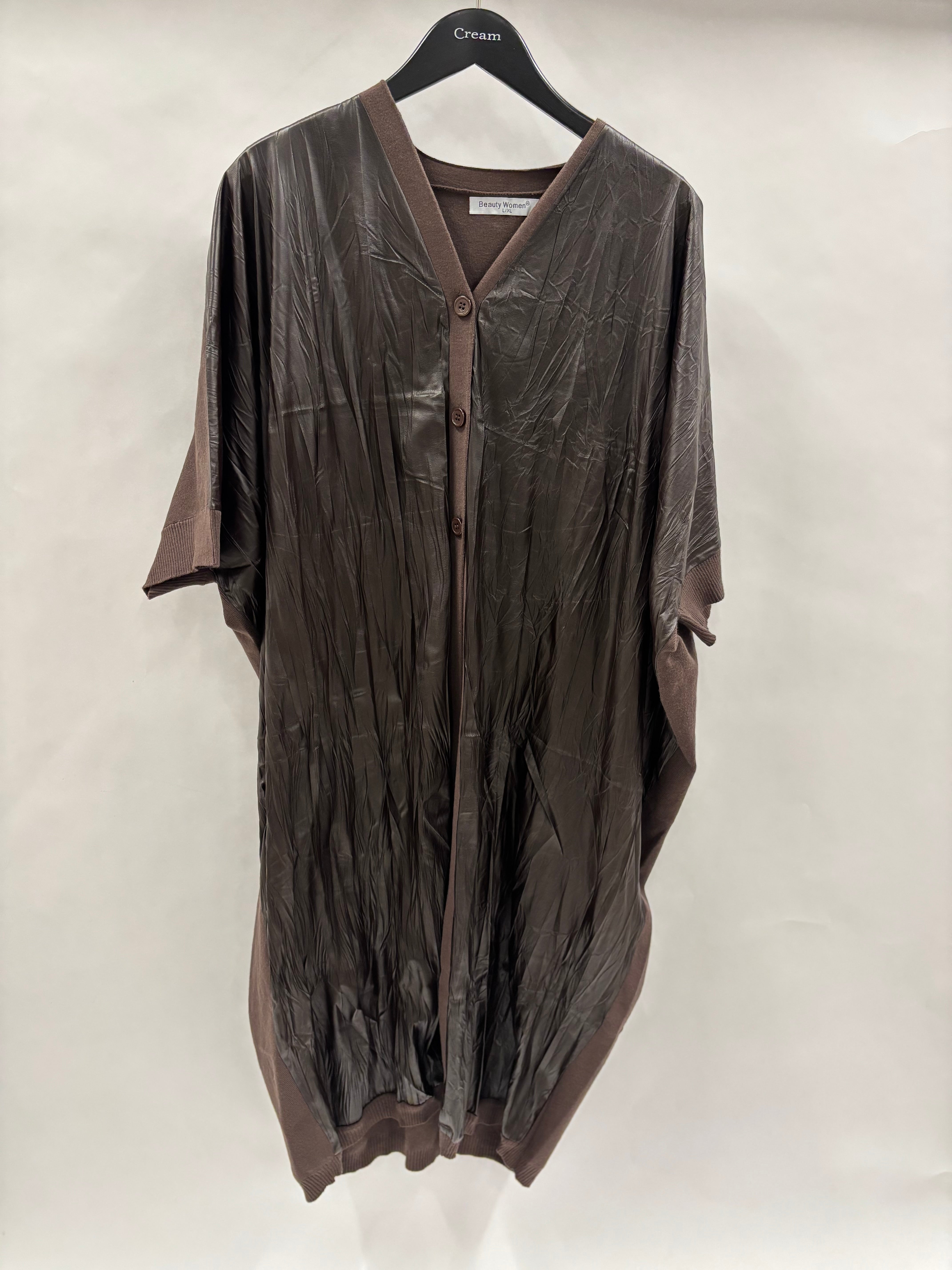 Opgrader dit outfit med denne læderlook cardigan med korte ærmer, der kombinerer et moderne, råt udtryk med let komfort. Den korte ærmelængde gør cardiganen perfekt til layering over toppe, skjorter eller kjoler, og det stilfulde læderlook tilfører et eksklusivt touch til dit hverdags- eller festlook.