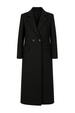 Opgrader din garderobe med denne elegante lange frakke i en klassisk farve. Frakken er designet med et skarpt snit og dobbeltradet lukning med sorte knapper, der tilføjer et sofistikeret udtryk. Det strukturerede revers og de to frontlommer giver både stil og funktionalitet, mens den fulde længde til under læggen skaber en slank silhuet.
