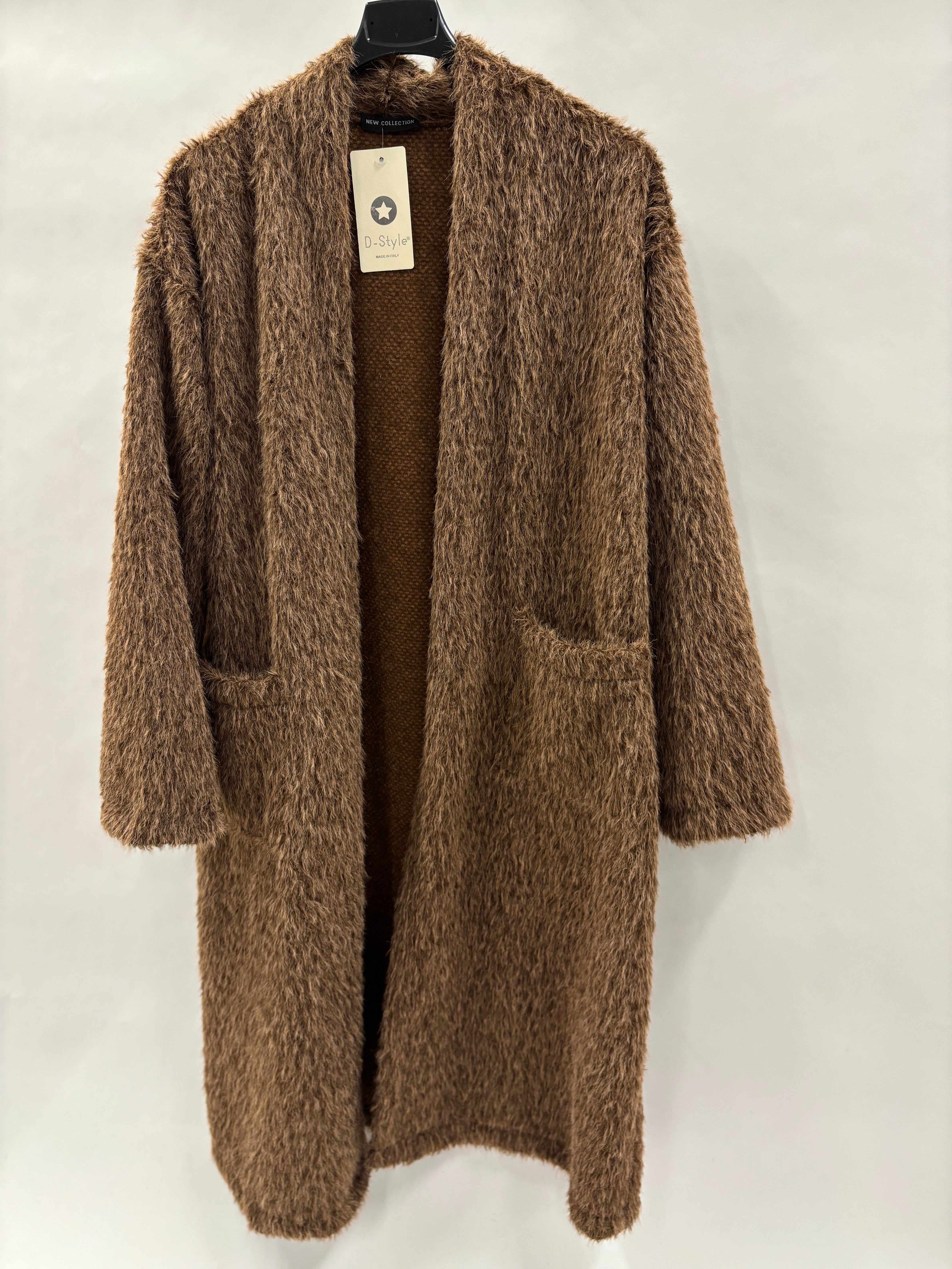 Lang Pelscardigan med Lommer – Blød, Varm og Luksuriøs