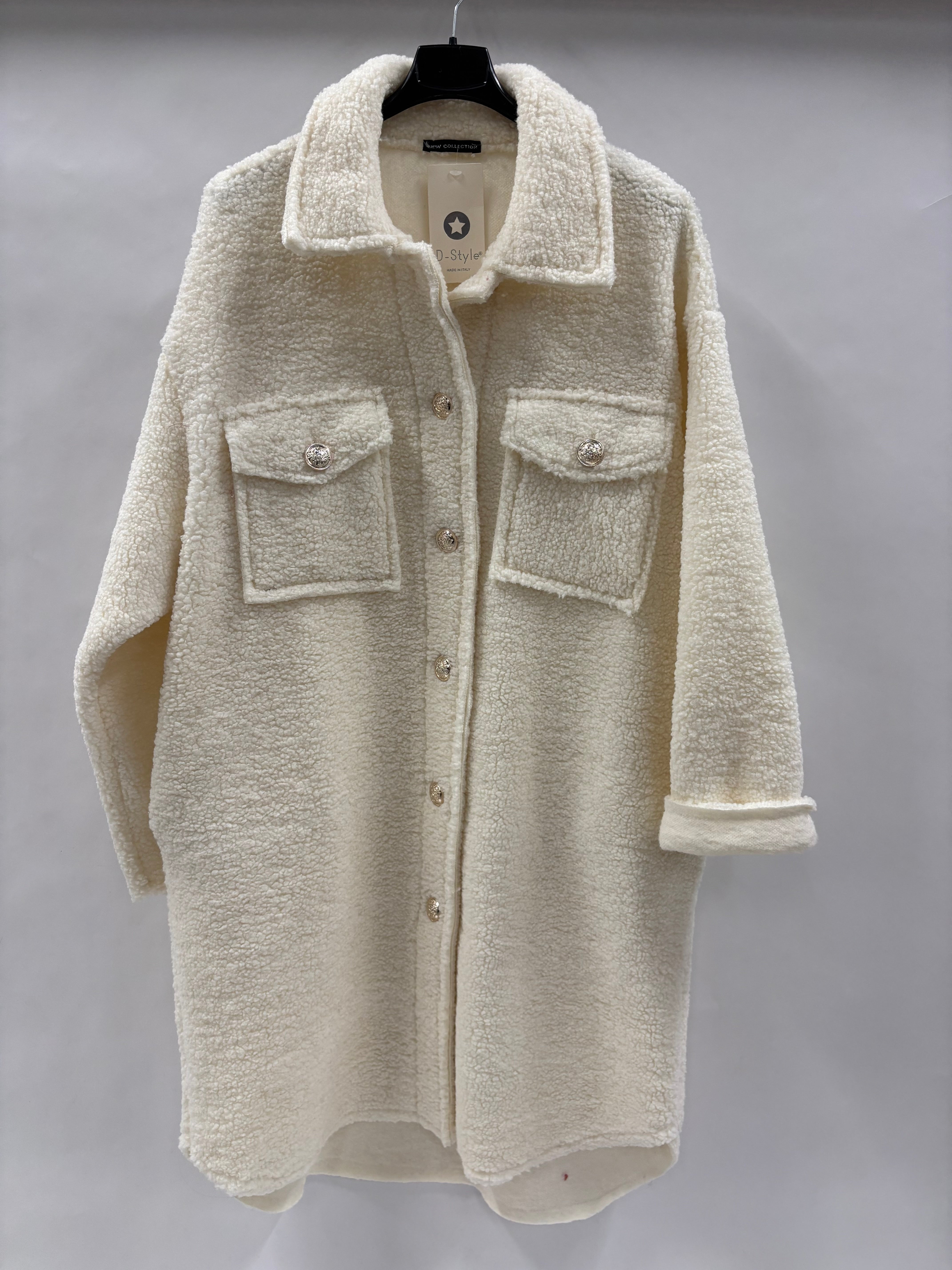 Hold dig varm med stil i denne lange teddyfrakke med guldknapper, der kombinerer luksuriøs komfort med et elegant udtryk. Den bløde teddystruktur giver en varm og fluffy følelse, mens de smukke guldknapper tilfører et eksklusivt og sofistikeret look.