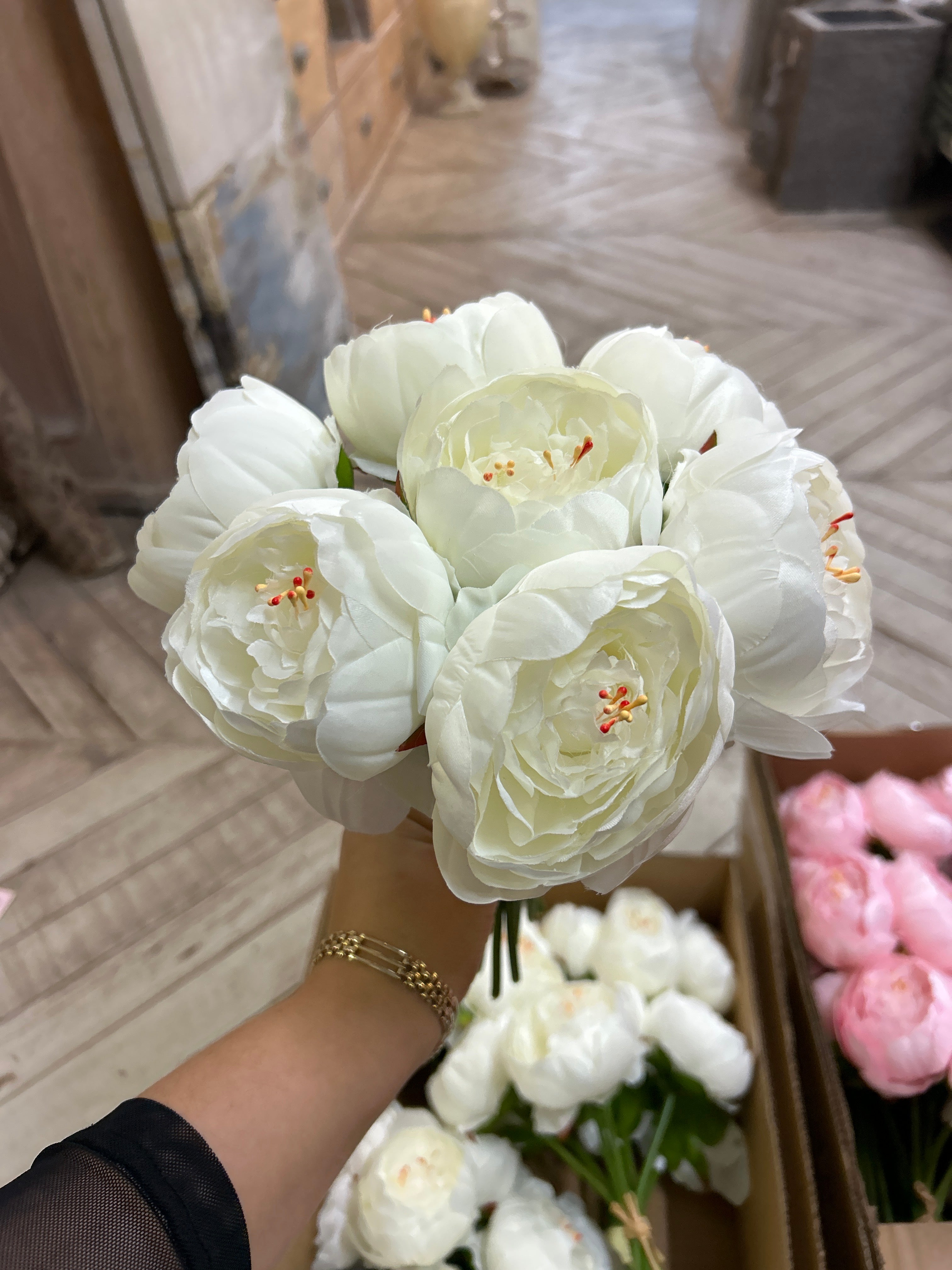 Bring tidløs elegance ind i hjemmet med denne smukke pæon buket i hvid. Buketten består af fyldige blomsterhoveder med realistiske kronblade og detaljer, der giver et autentisk udtryk – perfekt som en dekorativ løsning, der holder år efter år.