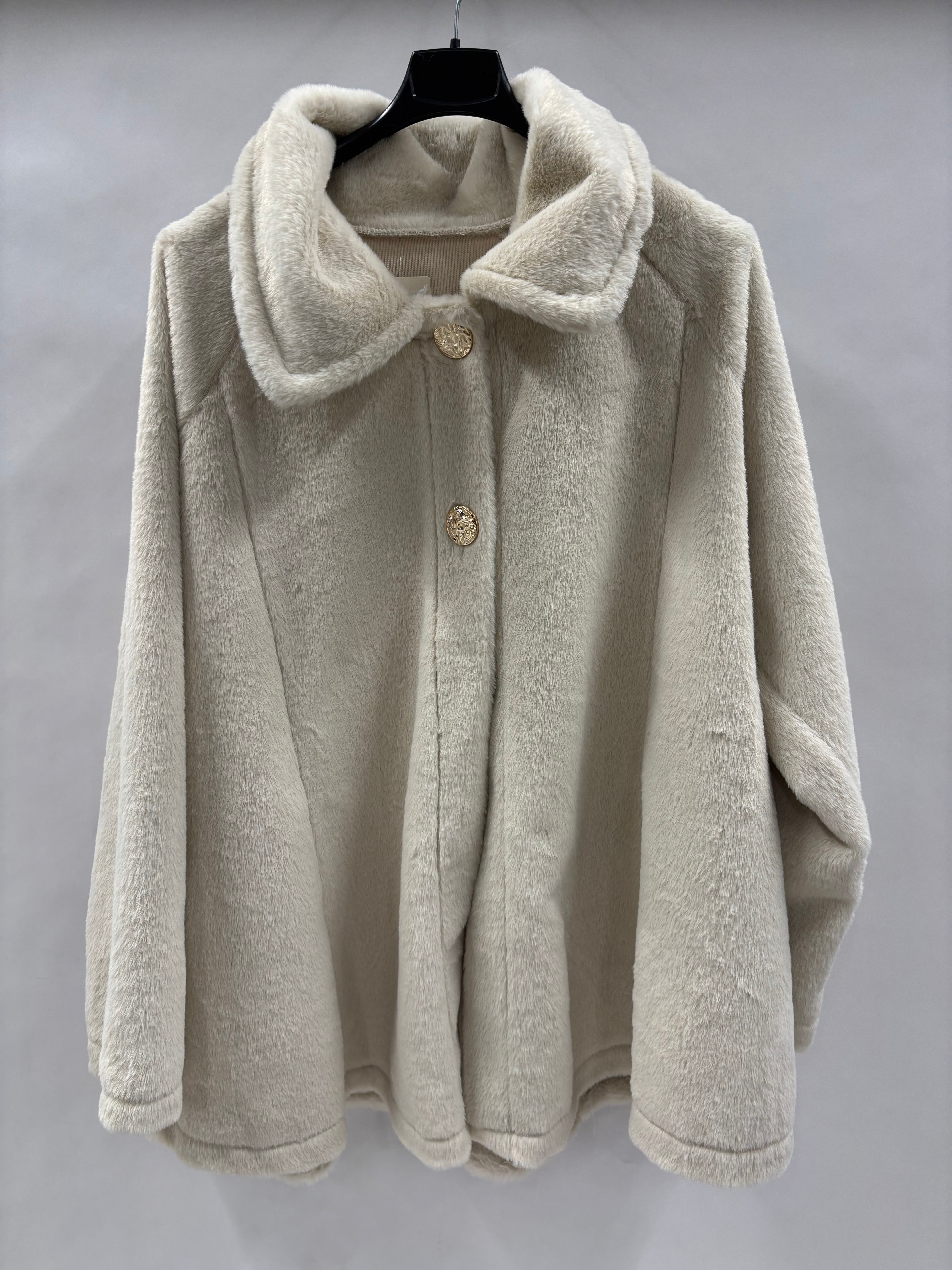 Beige Pelsjakke med Guldknapper – Luksuriøs, Blød og Trendy