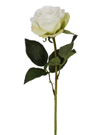 Skab romantisk charme og tidløs elegance i din indretning med denne kortstilkede kunstige rose på 38 cm. Rosen er designet med naturtro kronblade i hvid/creme nuance og realistiske grønne blade, der giver et ægte og frisk udtryk – helt uden behov for vanding eller pleje.
