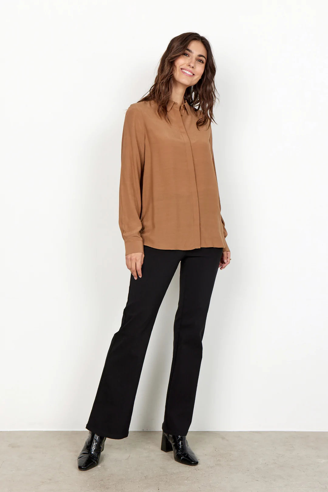 SC-Lilly 46-B are a pair of fine trousers in a viscose and polyamide blend. They have a slight width at the bottom. Combine them with a printed blouse and a pair of high-heeled boots for a modern outfit.