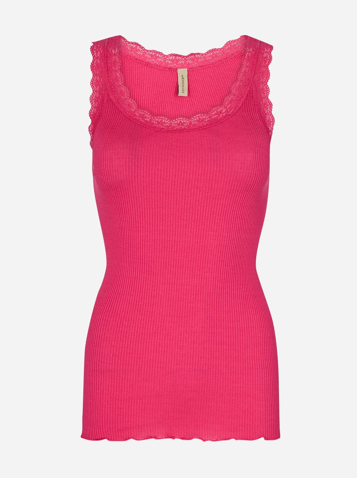 SC-Sarona 1 er en must-have top i en eksklusiv silke og bomuldskvalitet. Det er en klassisk rundhalset top med blonde detaljer og en rippet effekt. Den feminine top er perfekt som en komfortabel basis under alle dine yndlings bluser eller kjoler.