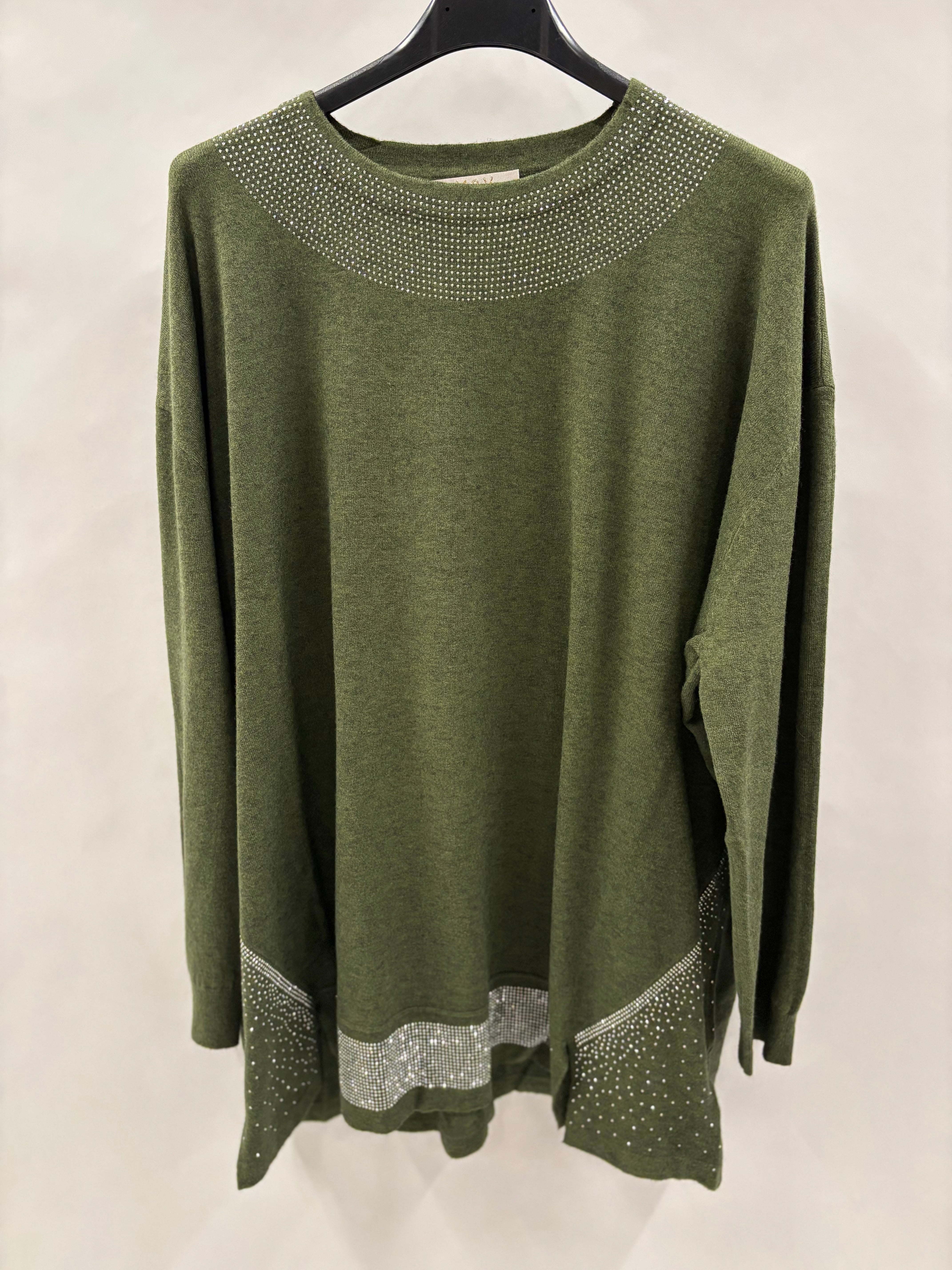 Forkæl din garderobe med denne luksuriøse strikbluse, der kombinerer komfort og glamour på den mest elegante måde. Blusen er udsmykket med glimtende sten både langs halsudskæringen og i bunden af blusen, hvilket giver et sofistikeret og eksklusivt udtryk, der skiller sig ud.
