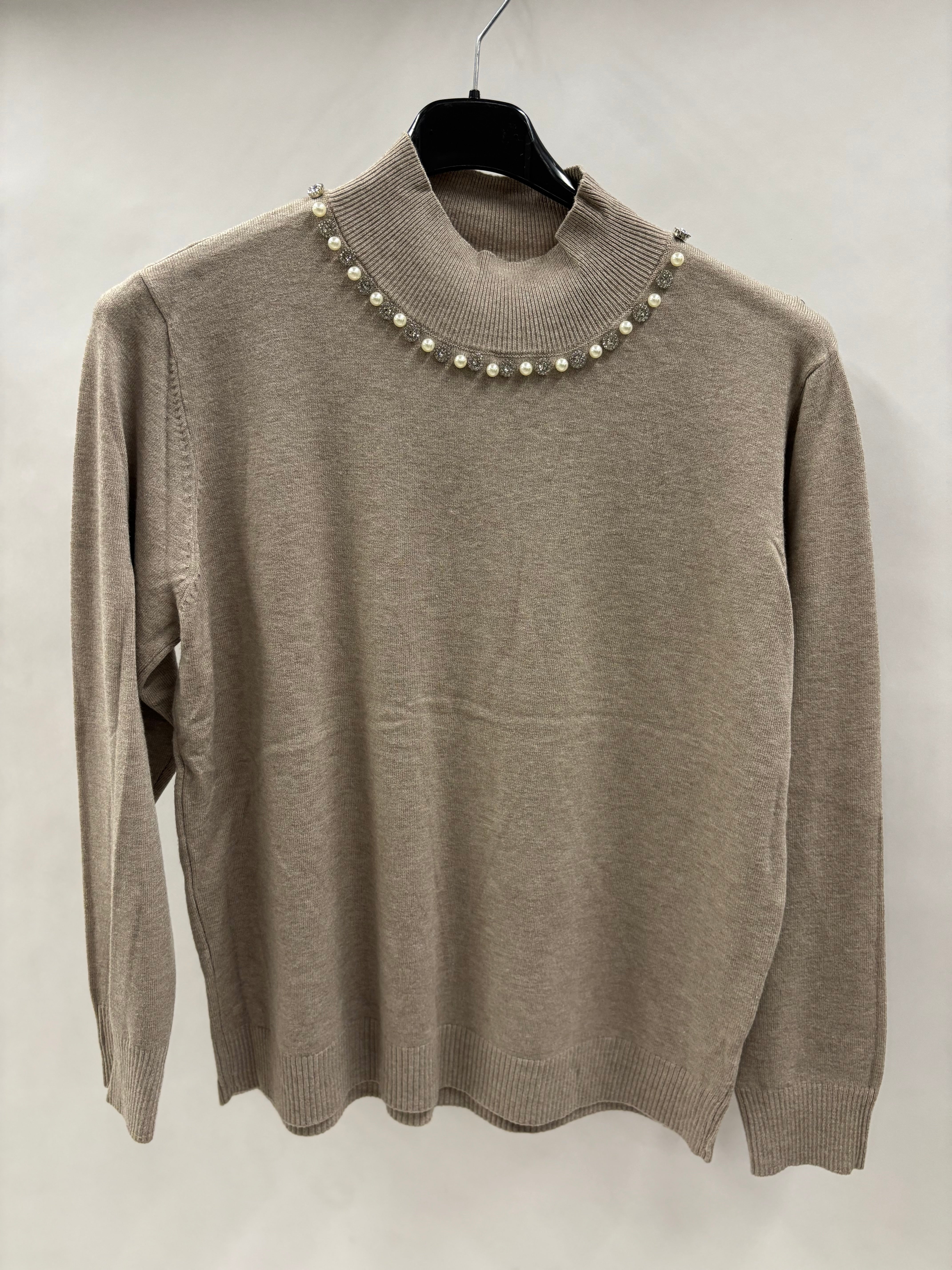 Tilføj et feminint og elegant touch til din garderobe med denne striktrøje med perlehals. Det bløde og komfortable strikmateriale sikrer, at trøjen føles behagelig hele dagen, mens de fine perle-detaljer langs halsen giver et sofistikeret og stilfuldt udtryk.