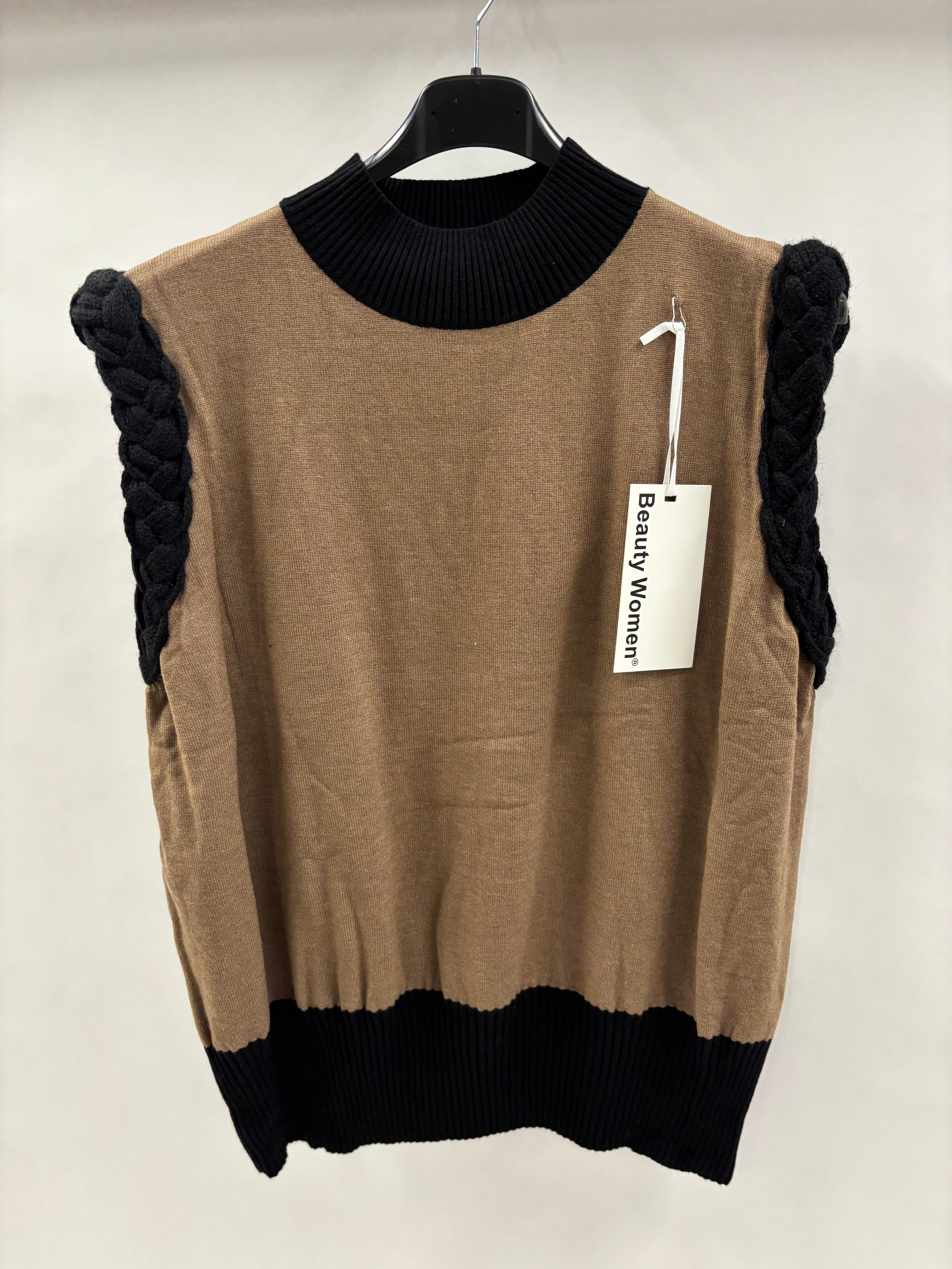 Opgrader din garderobe med denne flettede strikvest, der kombinerer klassisk design med blød komfort. Den detaljerede flettestrik giver et elegant og textured look, mens den alsidige vest er perfekt til layering over skjorter, bluser eller kjoler – ideel til både hverdag og hyggelige stunder.