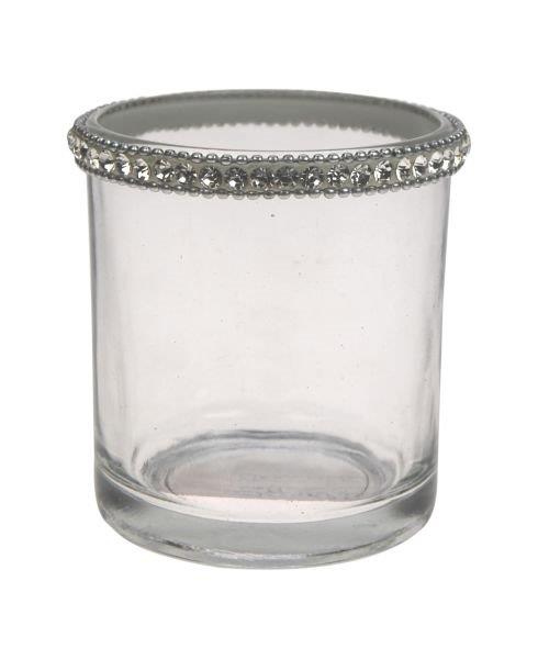 Skab hyggelig stemning og eksklusiv elegance med denne Tealight Glass Cup i klart glas. Lysestagen er dekoreret med en smuk sølvfarvet metalkant med fine detaljer, der tilføjer et luksuriøst udtryk til ethvert rum. Når lyset tændes, reflekteres flammen elegant i glasset og den skinnende sølvkant.